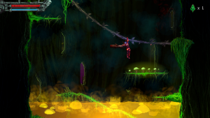 The stupendous citadel Valfaris has reappeared in the orbit of a dying sun after disappearing from the galactic charts. Therion, a valiant son of Valfaris returns home to find Valfaris overrun by an ever-growing darkness. Playing as Therion, you must explore the citadel and rid it from its evil – basically, kill everything.